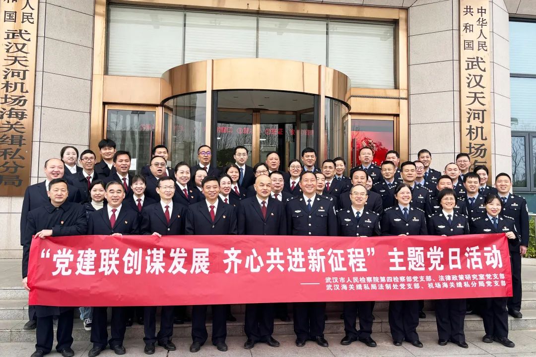 一是以創新黨建聯建模式強化司法戰斗“凝聚力”。第四檢察部黨支部在黨建工作中創新“1+N+5”黨建聯建模式,即一個黨支部聯合結對的多個黨支部,通過組織建設互促、黨員干部互動、黨建載體互用等形式,逐步形成“組織聯建、隊伍聯訓、活動聯辦、黨員聯育、業務聯促”的黨建發展格局。2023年3月24日,第四檢察部黨支部、法律政策研究室黨支部與武漢海關緝私局法制處黨支部、機場海關緝私分局黨支部聯合開展主題黨日黨建聯建活動,探索以黨建引領業務,推進優化營商環境和檢警協作工作質效。