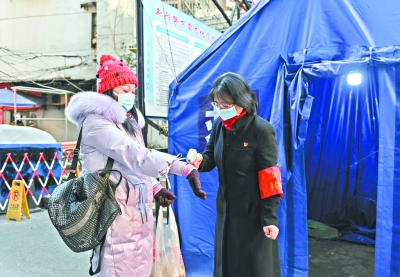 “進入冬季,疫情防控形勢依舊嚴峻,請居民朋友戴口罩、勤洗手、不聚集。”8日上午,市總工會新聞中心黨支部黨員胡文輝來到江漢區花樓水塔街東民社區值守,為居民測體溫,并做好疫情防控宣傳。