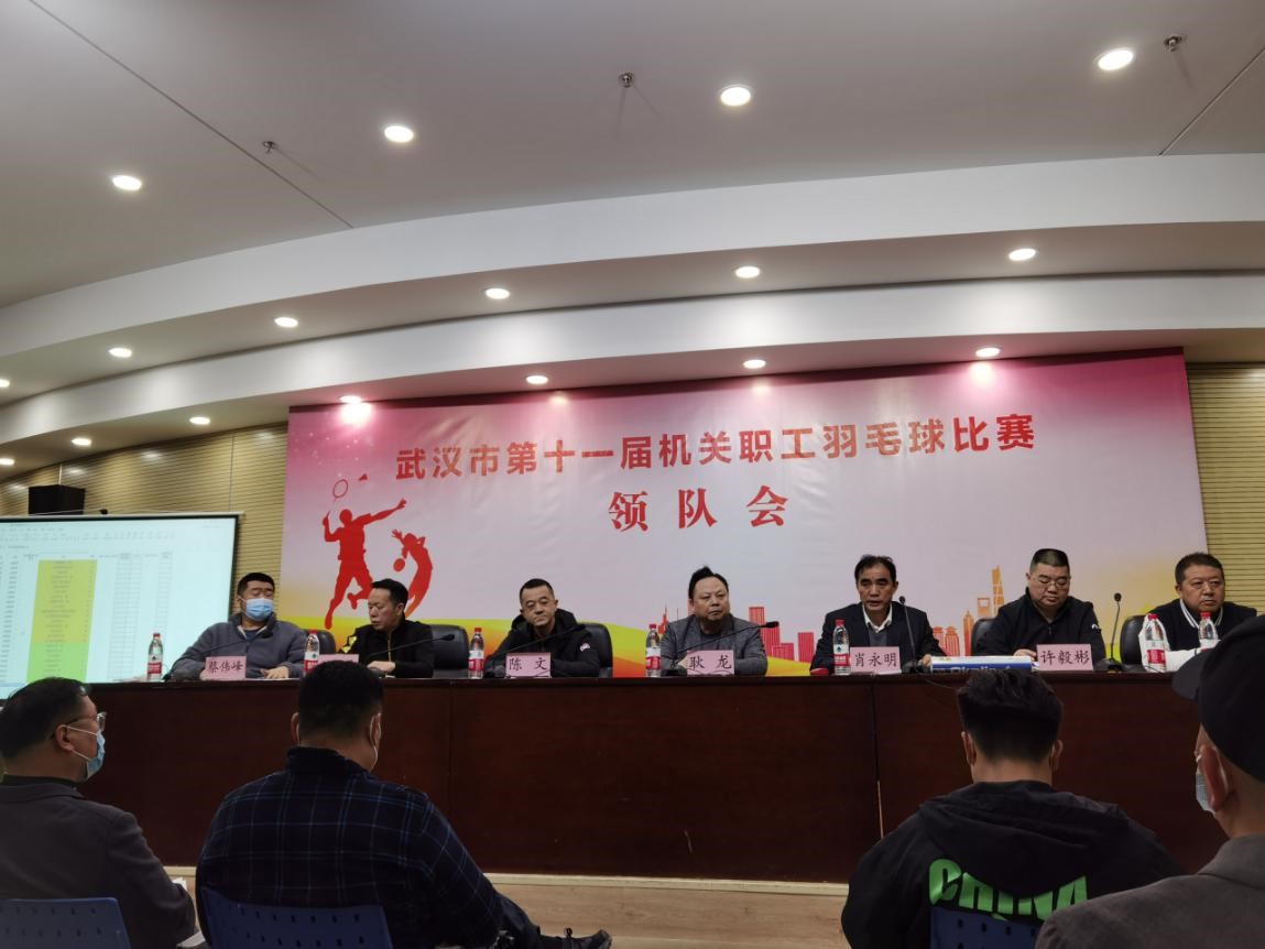 3月16日下午,武漢市第十一屆機關職工羽毛球比賽領隊會在武漢體育中心召開,市委市直機關工委二級巡視員耿龍同志到會。報名參賽的77個市直單位和10個區分別派領隊參加會議。