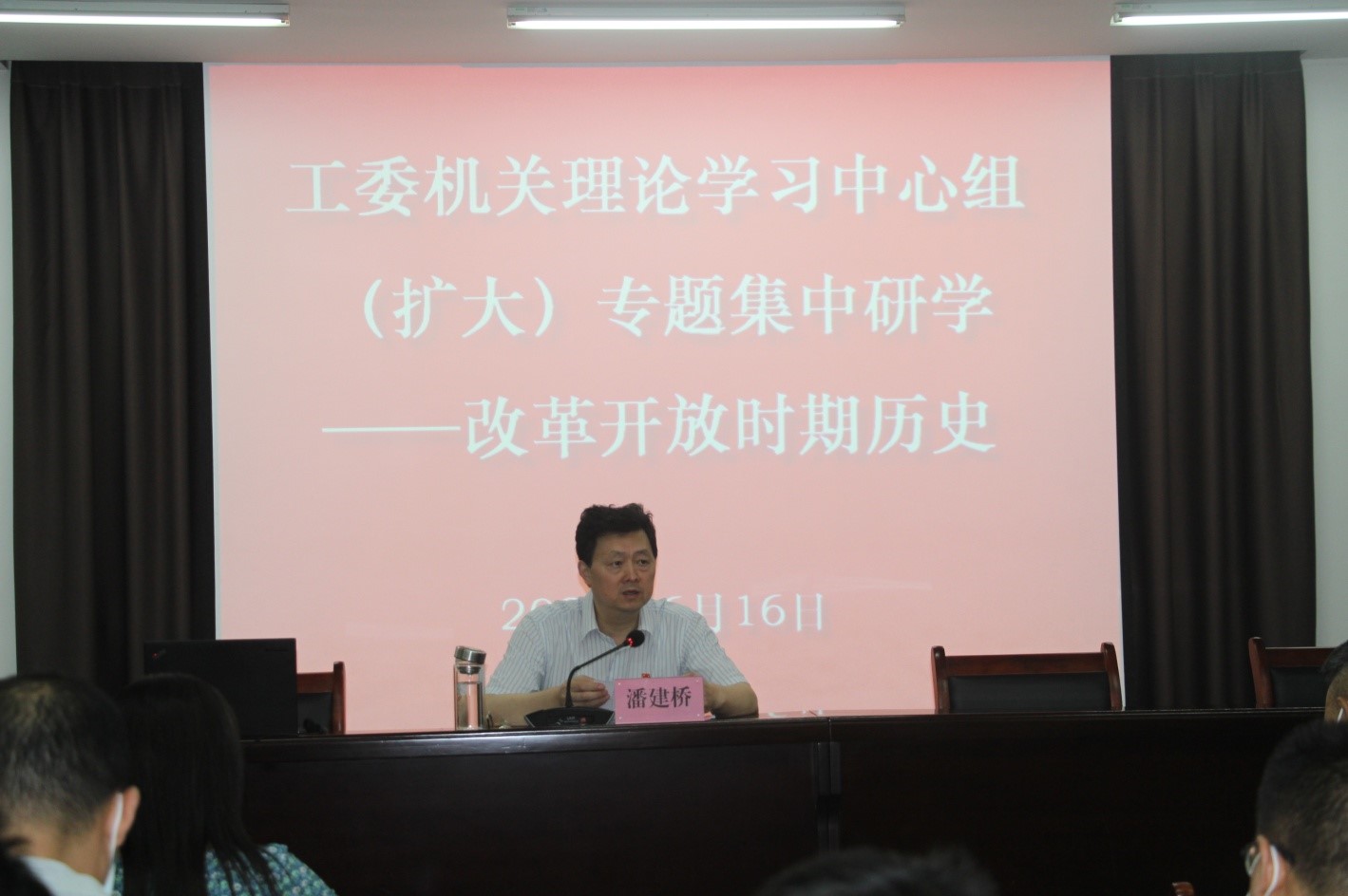 近日,市委市直機關(guān)工委理論學習中心組專題集中研學改革開放時期歷史,機關(guān)全體黨員、光華社區(qū)黨委成員和黨員代表列席了會議。市委市直機關(guān)工委常務副書記潘建橋主持專題集中研學。