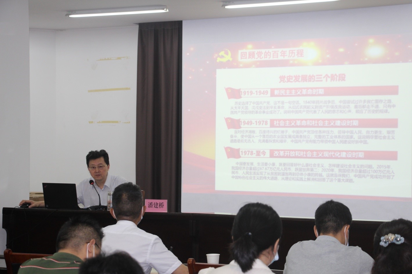 潘建橋同志以《學黨史悟思想辦實事開新局加快打造五個中心迎接建黨100周年》為題為機關(guān)全體黨員講授專題黨課。他帶領(lǐng)大家一起回顧了黨的百年歷史。他指出,學習黨的歷史,一定要不忘初心,牢記使命,要通過黨史“六大重點內(nèi)容”的學習教育,達到學史明理、學史增信、學史崇德、學史力行。他強調(diào)要通過開展專題學習、加強政治引領(lǐng)、組織專題培訓、開展“我為群眾辦實事”實踐活動、召開專題組織生活會等形式,開展好黨史學習教育,為加快打造武漢“五個中心”作出應有貢獻。