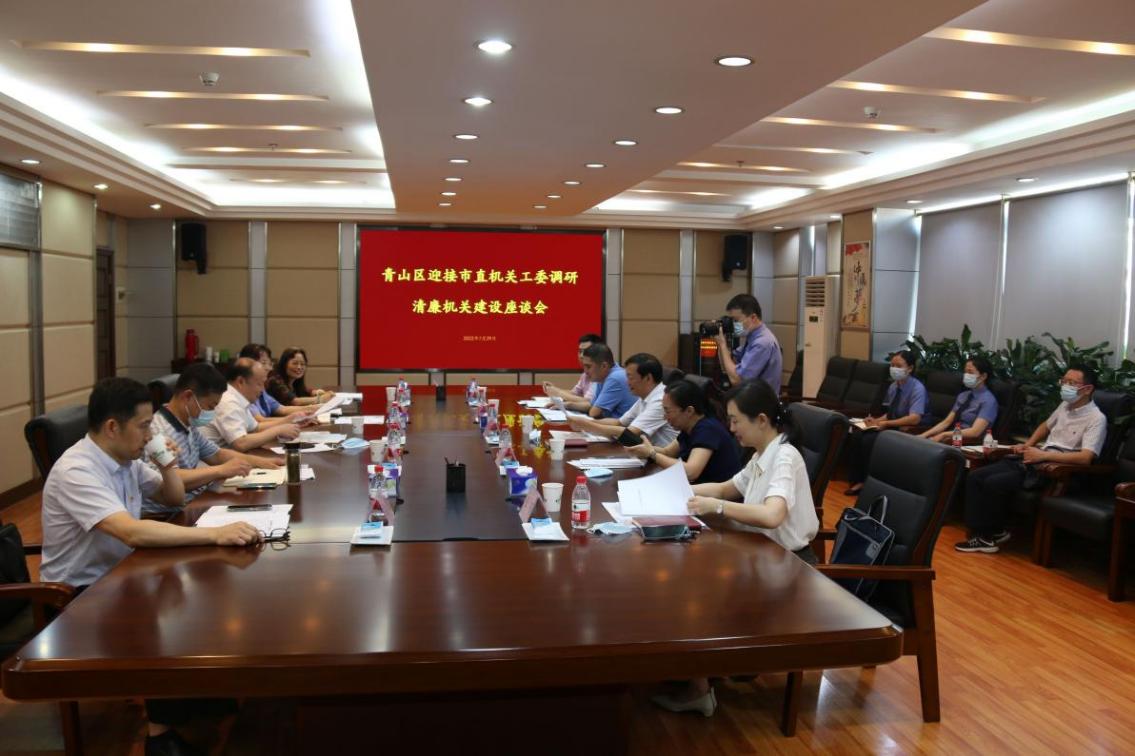 7月29日下午,市委市直機關工委分管日常工作的副書記徐輝、副書記胡娟一行赴青山區調研“清廉機關”建設工作,青山區委常委、區紀委書記、區監委主任趙信忠,區委常委、區委辦公室主任傅謙,區檢察院黨組書記、檢察長張莉陪同調研,區直機關工委、區檢察院、區行政審批局有關部門負責人參加調研。