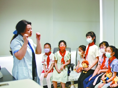 6月1日是“檢察開放日”,市檢察院黨員干警沈青青帶小朋友參觀“智慧檢務創新實驗室”。