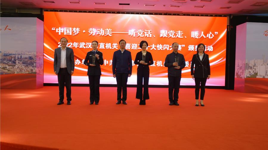 為全面反映新時代偉大變革,大力營造奮進新征程、喜迎二十大的濃厚氛圍,市委市直機關工委舉辦了“喜迎二十大快閃大賽”主題活動,活動啟動以來,市直各單位踴躍參賽,經過海選、初評及專家評審、網絡投票等環節,12家市直單位呈報的作品分獲一、二、三等獎。10月10日上午,“中國夢?勞動美——聽黨話、跟黨走、暖人心”2022年武漢市直機關“喜迎二十大快閃大賽”頒獎活動在武漢廣播電視臺31樓多功能廳舉行。