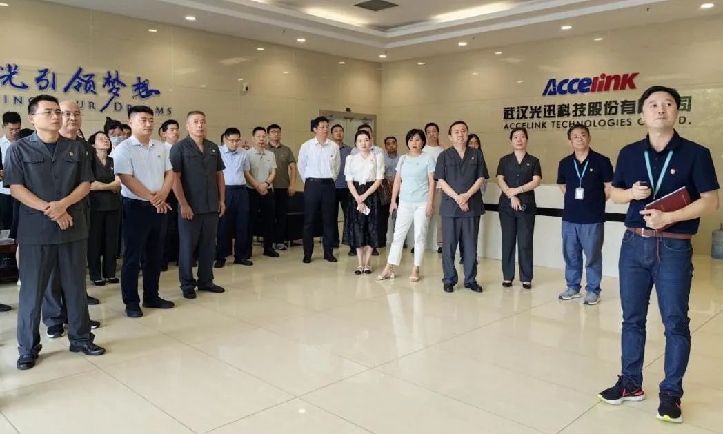 8月29日,市委市直機關工委組織市委辦公廳、市紀委監委機關、市委宣傳部、市民政局等20家單位黨員代表到武漢光迅科技股份有限公司觀摩武漢市中級人民法院知識產權審判庭黨支部和光迅公司職能管理第二黨支部聯合開展的“加強知識產權保護·推動科技自立自強”主題黨日活動。