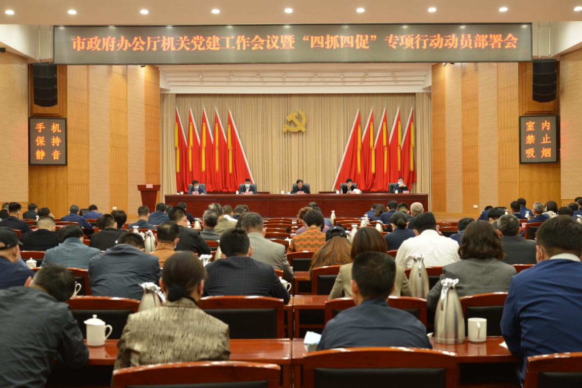 近日,市政府辦公廳組織召開2022年機關黨建工作會議暨“四抓四促”專項行動動員部署會。市政府副秘書長陳明權、黃志彤等領導出席會議,會議由廳機關黨委書記翟萍主持,機關全體黨員干部參加。