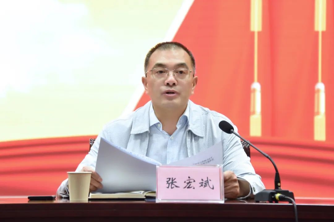 張宏斌結合市委巡回指導組工作職責,就落實好主題教育各項任務提出意見: 一要提高政治站位,增強政治自覺;二要把握總要求,確保貫穿始終;三要錨定根本任務,突出主題主線;四要緊扣具體目標,時刻對標對表;五要貫通重點措施,推動走深走實。