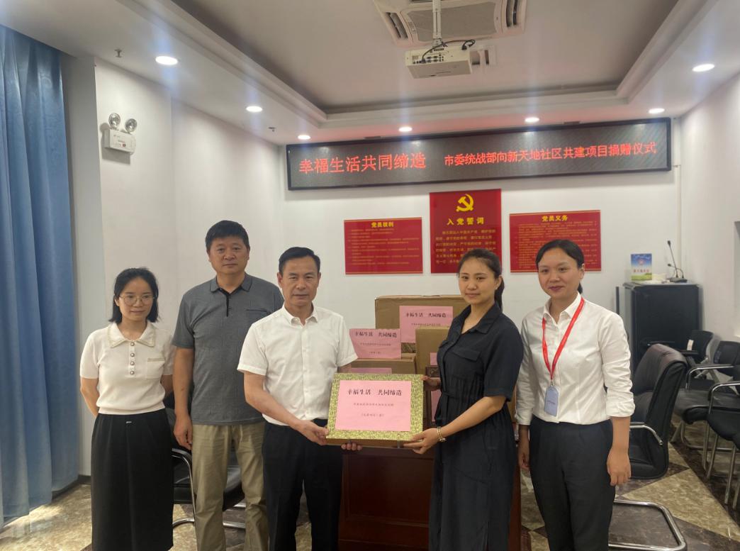 捐贈(zèng)儀式之后,雙方召開了座談會(huì),新天地社區(qū)書記王銳端介紹了社區(qū)近期重點(diǎn)難點(diǎn)工作,對(duì)市委統(tǒng)戰(zhàn)部一直以來對(duì)社區(qū)工作的支持和幫助表示感謝,并希望市委統(tǒng)戰(zhàn)部在推動(dòng)社區(qū)老舊環(huán)境改造和提檔升級(jí)方面繼續(xù)提供支持。市委統(tǒng)戰(zhàn)部副部長趙學(xué)龍表示,下一步將充分發(fā)揮統(tǒng)戰(zhàn)部門聯(lián)系廣泛的優(yōu)勢,繼續(xù)與社區(qū)聯(lián)動(dòng)、共建,把更多優(yōu)質(zhì)資源、優(yōu)質(zhì)服務(wù)送到社區(qū),協(xié)助社區(qū)解決工作中的實(shí)際問題,幫助居民群眾辦實(shí)事辦好事,為基層社區(qū)和諧治理和居民幸福生活貢獻(xiàn)更大的力量。