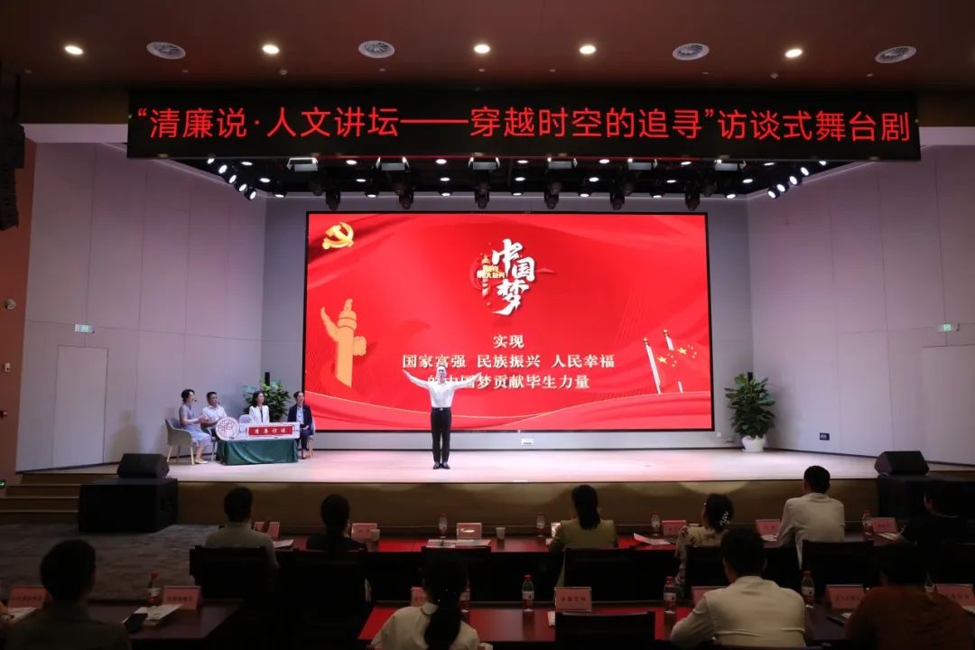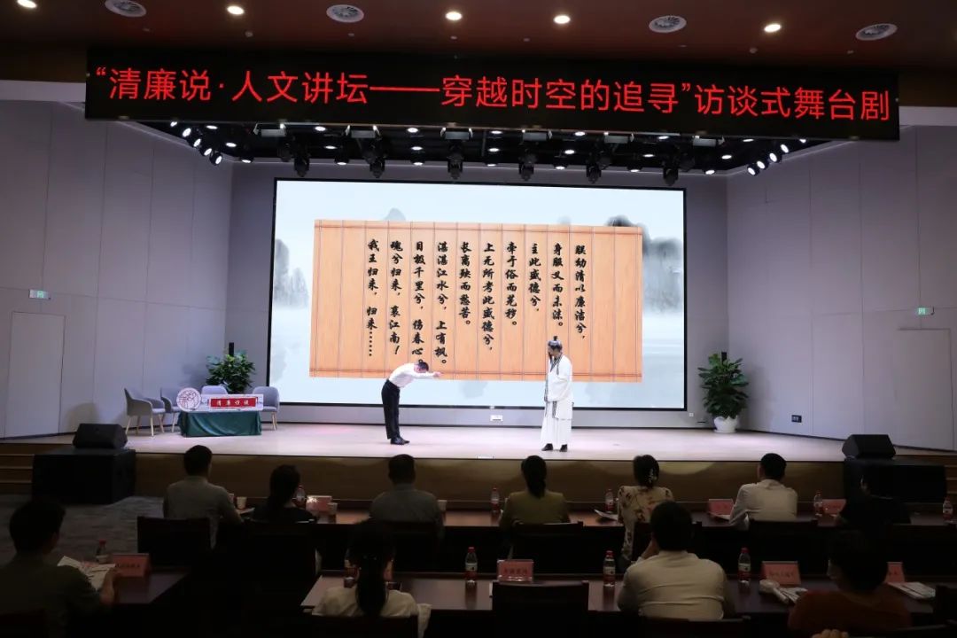 活動以“訪談+舞臺劇”相結合的形式進行古今對話,既以現場訪談的形式帶領大家學習“廉”的由來與衍變,也通過“守望家風”、“鐵的紀律”、“清風校園”三個篇章的舞臺劇演繹清廉故事,讓黨員干部在沉浸式體驗中學廉、知廉、守廉、踐廉。