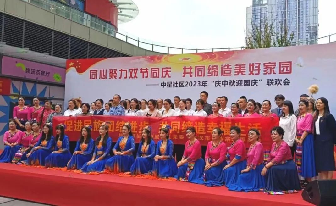9月26日,武漢市民宗委會同包聯的江岸區塔子湖街道中星社區、江岸區委統戰部(區民宗局)在轄區旭輝星空商業街共同舉辦了“同心聚力雙節同慶,共同締造美好家園”文藝匯演暨鑄牢中華民族共同體意識宣傳月活動,以人民群眾喜聞樂見的形式表達出對黨和國家的熱愛之情,營造出熱烈喜慶、文明祥和的節日氛圍,豐富了群眾的精神文化生活。