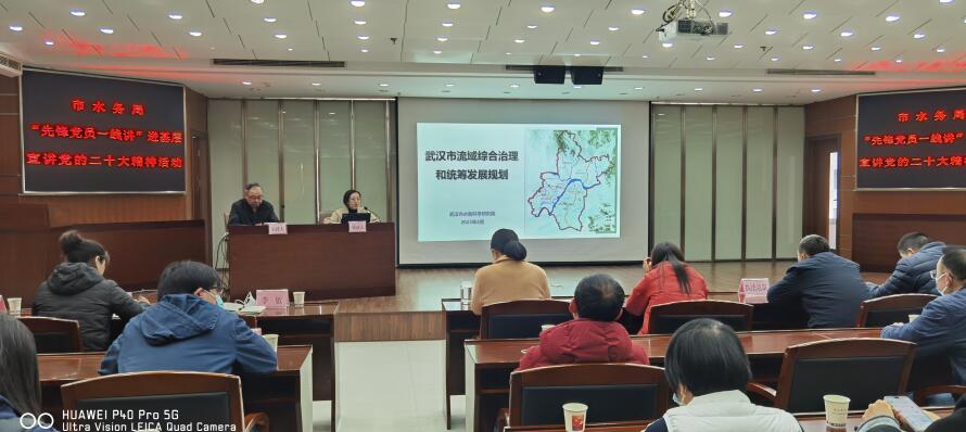 深入基層 凝聚流域綜合治理合力。2月21日、2月23日,省黨代表李敏帶領(lǐng)“先鋒黨員一線講”宣講隊(duì)走進(jìn)基層各站所宣講黨的二十大精神,基層黨員干部及職工代表共計(jì)140余人參加活動(dòng)。宣講隊(duì)員以“武漢市流域綜合治理與統(tǒng)籌規(guī)劃”為主題,分別圍繞學(xué)習(xí)二十大精神與呵護(hù)生態(tài)長(zhǎng)江、美麗河湖守護(hù)、確保城市安瀾等方面進(jìn)行深刻講述。參會(huì)同志們紛紛表示,宣講會(huì)進(jìn)一步激發(fā)了水務(wù)系統(tǒng)干部職工全面學(xué)習(xí)、全面把握、全面落實(shí)黨的二十大精神的自覺(jué)性和堅(jiān)定性,為奮力譜寫全面建設(shè)社會(huì)主義現(xiàn)代化國(guó)家的武漢篇章做出水務(wù)貢獻(xiàn)。