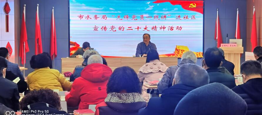 黨的二十大以來(lái),市水務(wù)局不斷創(chuàng)新基層理論宣講形式,進(jìn)社區(qū)、進(jìn)基層、進(jìn)一線,深入開展“先鋒黨員一線講”宣講活動(dòng),用群眾話講“家國(guó)事”,讓二十大的理論宣講飛入尋常百姓家。