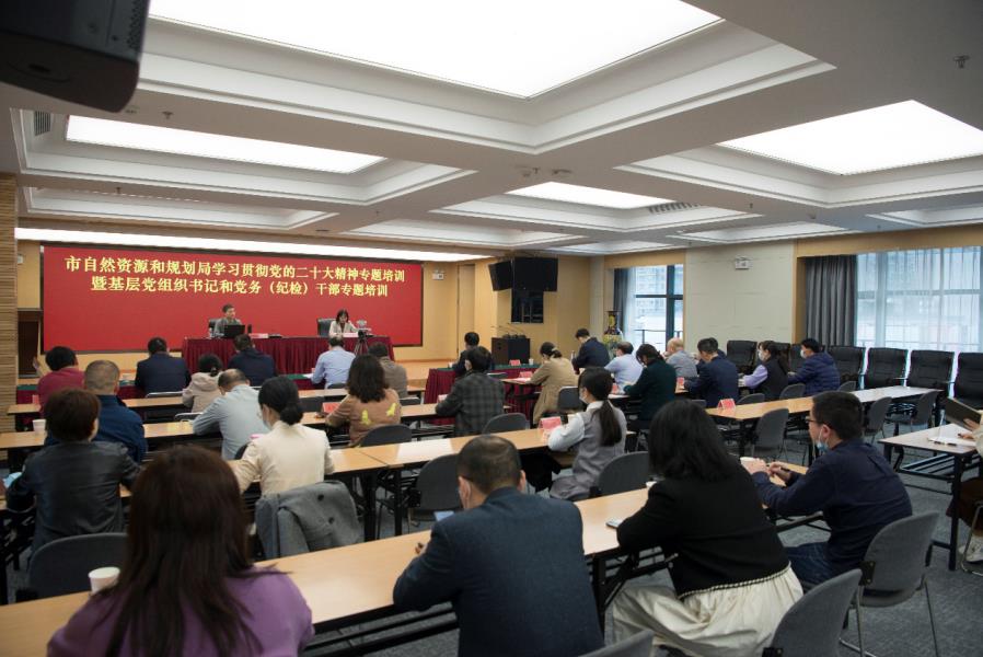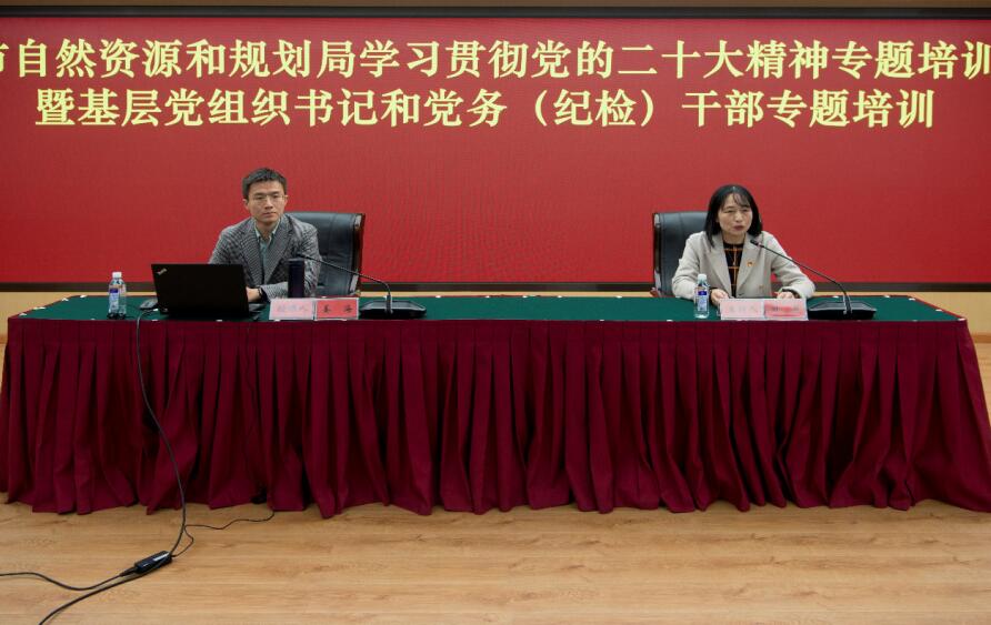 為全面深入學習領會黨的二十大精神,推進省、市黨代會各項工作部署落實,落實“四學四提升”專項思想政治工作要求,3月10日,市自然資源和規劃局舉辦局系統學習貫徹黨的二十大精神專題培訓暨基層黨組織書記和黨務(紀檢)干部專題培訓,邀請武漢市委黨校公共管理教研部副教授姜海為局系統黨員干部進行《學深悟透“共同締造”理念 構建城鄉社區治理共同體》輔導授課,局黨組成員、副局長田燕同志主持會議。