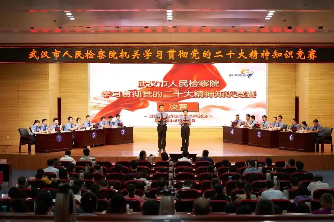 “智慧拼搏、快樂競爭;匠心筑夢、強國有我!”“派駐巡回、做優做強;履職盡責、使命擔當!”6月21日上午,武漢市人民檢察院會議廳內,“學習貫徹黨的二十大精神”知識競賽決賽正在舉行,響亮的團隊口號彰顯著檢察干警們飽滿的精氣神。