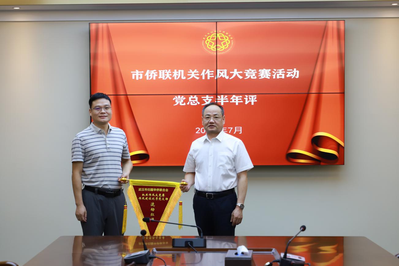 會后,市僑聯黨組書記、主席童賽雄為被評為“作風建設優秀黨支部”的機關一支部頒發了流動紅旗,鼓勵獲獎的黨支部和競賽標兵再接再厲,再創佳績,以優異成績迎接黨的二十大勝利召開。