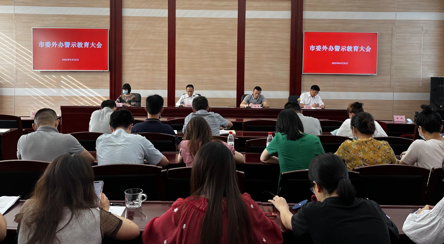8月25日下午,市委外辦召開黨員干部警示教育大會,傳達全市領導干部警示教育大會會議精神,進一步推進黨風廉政宣教月活動,對全體黨員干部開展警示教育。