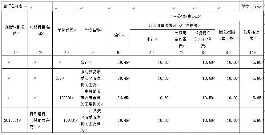 中共武漢市委市直機(jī)關(guān)工委2017年一般公共預(yù)算"三公"經(jīng)費(fèi)支出表