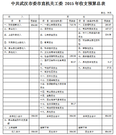 中共武漢市委市直機(jī)關(guān)工委2015年收支預(yù)算總表