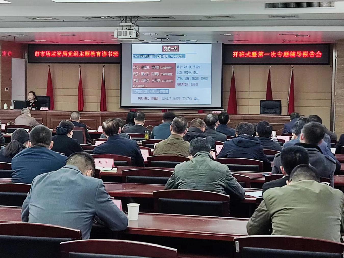 4月19日,市市場監管局黨組召開學習貫徹習近平新時代中國特色社會主義思想主題教育讀書班開班式暨第一次專題輔導報告會