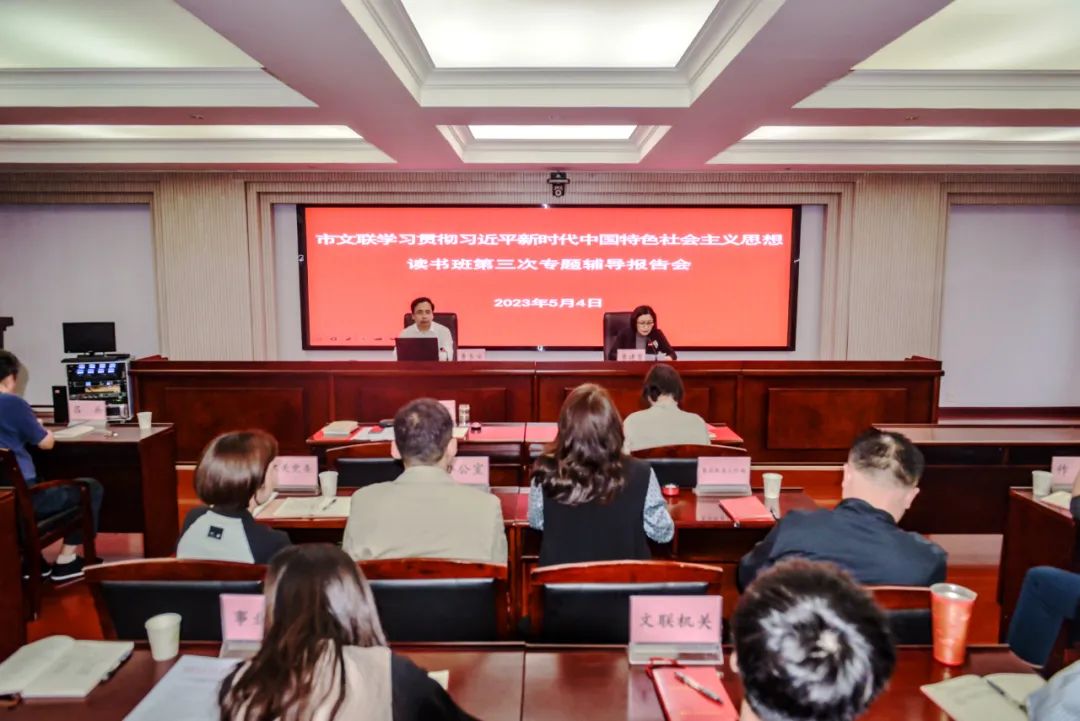 5月4日,市文聯學習貫徹習近平新時代中國特色社會主義思想讀書班第三次專題輔導報告會舉行。市文聯黨組書記、副主席章建育主持開班式并講話。市文聯黨組成員、副主席董芳,一級調研員呂兵出席會議。市文聯全體干部職工參加會議。