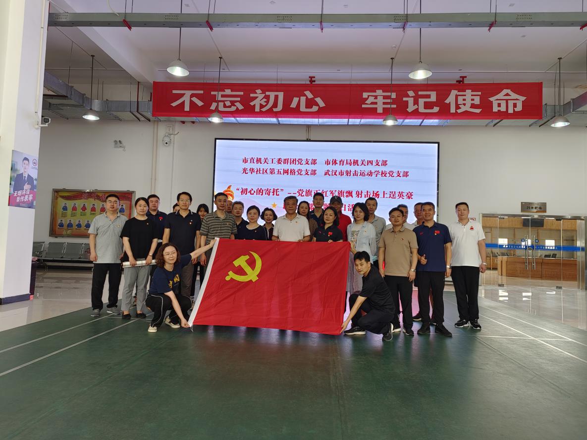 7月21日上午,市直機(jī)關(guān)工委群團(tuán)黨支部聯(lián)合市體育局機(jī)關(guān)四支部、武漢市射擊運(yùn)動(dòng)學(xué)校黨支部,開展“黨旗正紅軍旗飄射擊場上逞英豪”為主題的“初心的寄托”聯(lián)合特色支部主題黨日活動(dòng)。市體育局相關(guān)領(lǐng)導(dǎo)出席活動(dòng)。
